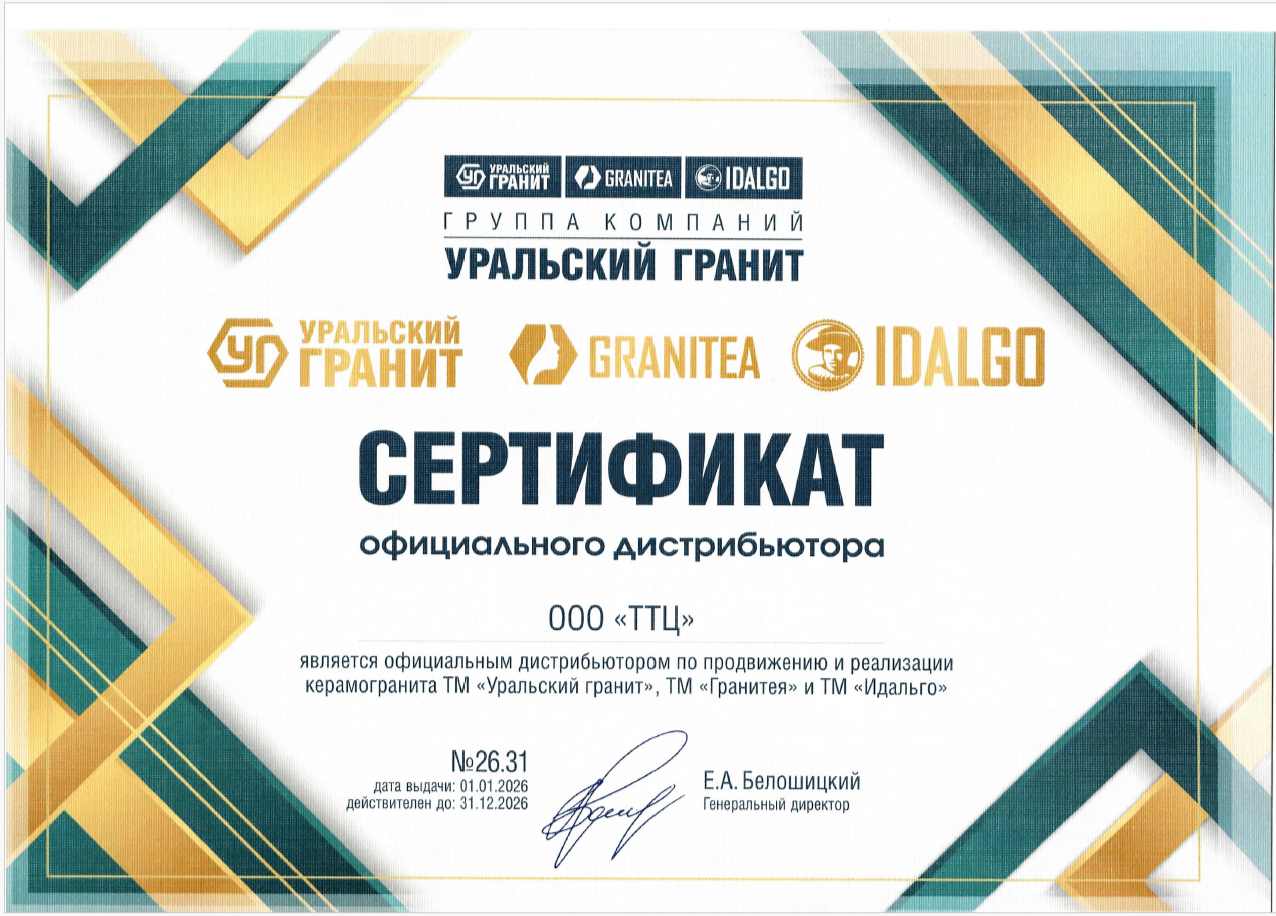 Идея: традиционные виды натуральных камней перенесли на керамогранит - так появилась торговая марка "Гранитея". Керамогранит с рисунком распространенных в отделке камней: мрамор, гранит, диабаз, габбро, травертина, оникса, песчаника и других пород неотличим от природных фактур. Коллекции "Гранитеи" подходит для внутренней отделки полов и стен, общественные зоны, холлы в жилых домах, торговые залы и рестораны. Особая популярность в использовании в частных домах и квартирах. Выпускается в двух форматах 600x600 мм и 1200x600 мм. Каждая коллекция получила свое название в честь уральских хребтов, рек и озер.