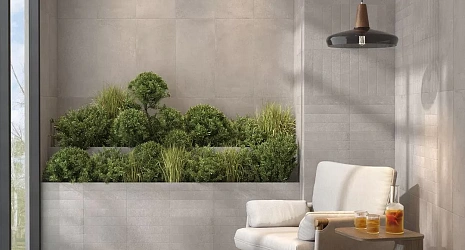 Настенная плитка: В данной коллекции представлена плитка для стен размером 60х60 см, которую можно укладывать с минимальными швами, и добиться эффекта сплошной поверхности. Кроме того, в ассортименте имеется плита с преднарезкой, которая имитирует крупную мозаику.